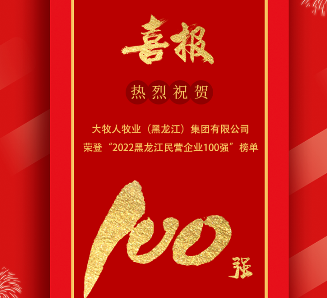 喜报!大牧人牧业(黑龙江)集团有限公司荣登“2022黑龙江民营企业100强”榜单